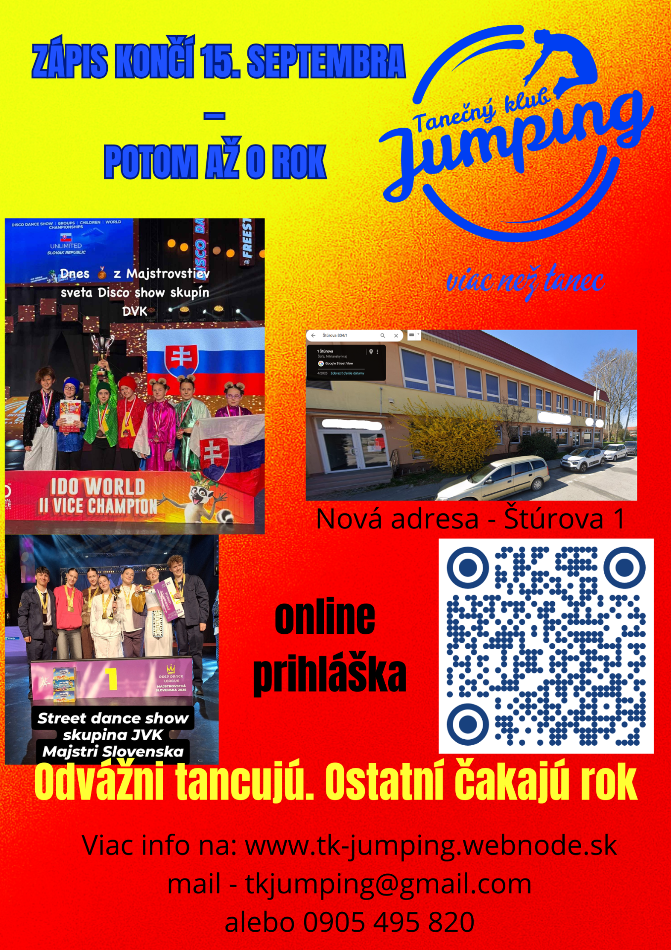 Chceš sa naučiť tancovať, ale zažiť aj kopec zábavy? Neváhaj, a prihlás sa na náš camp. Čaká ťa 5 dní tanečného workshopu pod vedením skúsených lektorov. S novými kamarátmi si môžeš oddýchnuť pri spoločenských hrách a svoju kreatívnu dušu zobudiť pri tvorivých dielňach, kde si môžeš vytvoriť niečo na pamiatku, aby si na tento camp nikdy nezabudol!